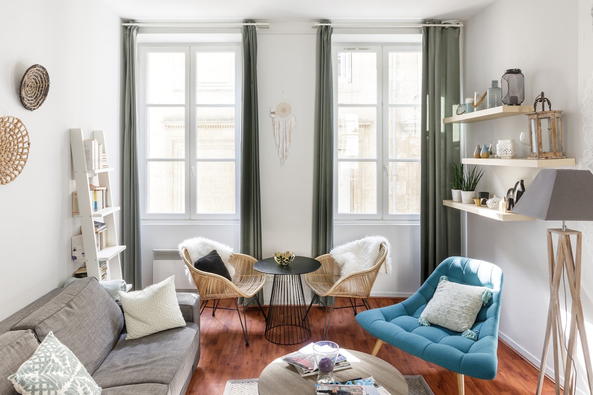 Located in the heart of Bordeaux's historic center, this large 2-room apartment is ideal for 2 or 4 people. Furnished and decorated with care, to make your stay in Bordeaux unforgettable. Set down your suitcases in Saint-Pierre, for total immersion in the historic heart of Bordeaux, between the lively church square and the banks of the Garonne. A picturesque setting for an authentic stay.