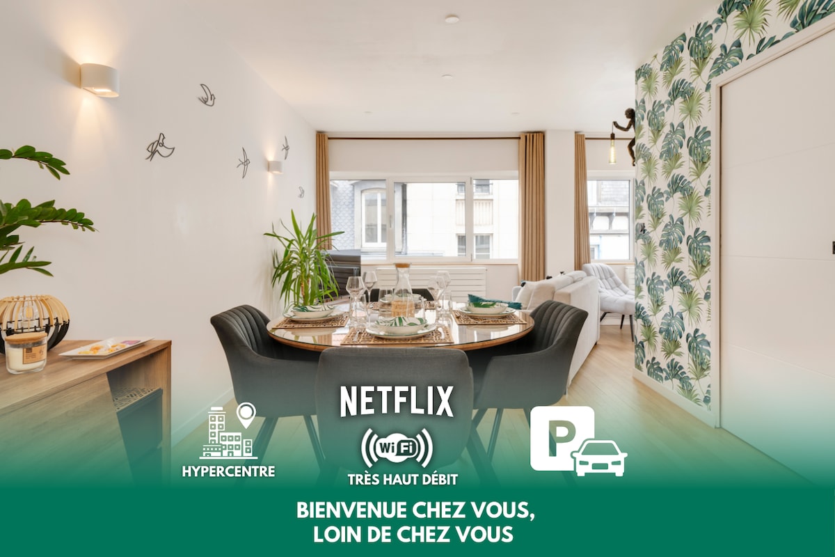 55m2 au 1er étage dans quartier Gare Centre Nancy à 1 minute à pied de la gare. Parking sous réservation à 3 minutes à pied de l'appartement Prix parking : 10€/nuit. Équipé, vous n'avez plus qu'à déposer vos bagages. Netflix, Prime, Wifi. Important : Présence d'un capteur qui détecte les nuisances sonores et envoie des alertes. Ce capteur est légal et respecte la vie privée. Les fêtes sont donc interdites Profils avec commentaires ++ exigés pour acceptation