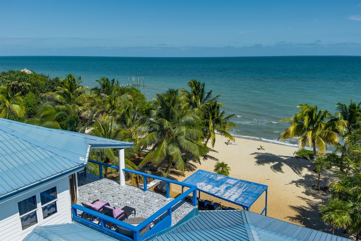 Welcome to Dolphin Beach Villa! An exquisite 3 story beachfront getaway with an oceanfront pool on a huge private lot, located just north of the Placencia airstrip. Turn off the main road and wind through the tropical trees and landscaping to arrive at your private oceanfront getaway. The villa is tucked into the back of its amazing, large lot and not visible from the road, providing a serene and exclusive hideaway experience.
