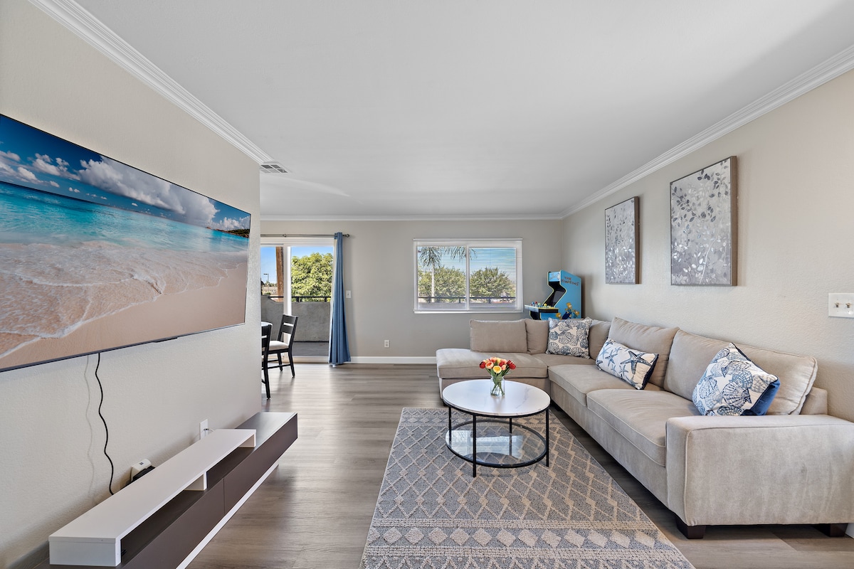 You'll love this airy, well appointed, 1-bedroom, 2nd floor apt surrounded by multi-million-dollar homes. The full-kitchen with the most modern appliances will wow you as will the rain-shower bathroom. Your own, in-unit, washer-dryer is sure to please. Pullout couch in the living area for a 3rd guest. Separate ACs for living & bdrm. Enjoy beautiful views from the many windows. Fast WiFi, Disney+, Netflix, Amazon Prime, YouTube TV. Disney is a 10-minute drive, Newport Beach is 18-minutes.