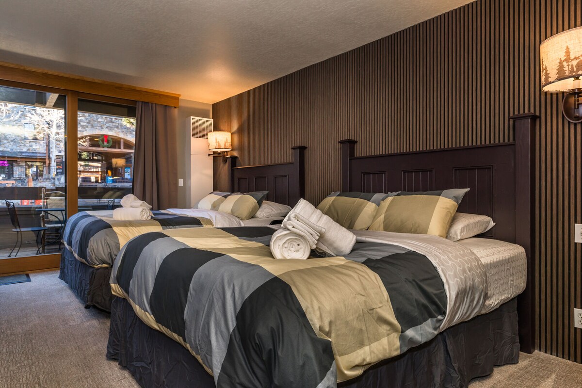 Ski In/Out 2minute walk to Village Sleeps 6 MAX, 5 beds 1 Master w/ Queen 4 Singles in Loft Second story 12%Tahoe Occupancy Tax INCL Village: restaurants, shops, iceskating/rollerskating, bike/ski rentals Rec Center: $10 /day/guest We have Coffee/Tea, Shamp/Condtnr, Bodywash, Suncreen, Qtips, HairDryer, Duraflames, Pool Towels, Private Parking NO A/C Free shared laundry access I follow the cancellation terms set by Airbnb. No exceptions NO pets.. Due to people w/ allergies! #14394