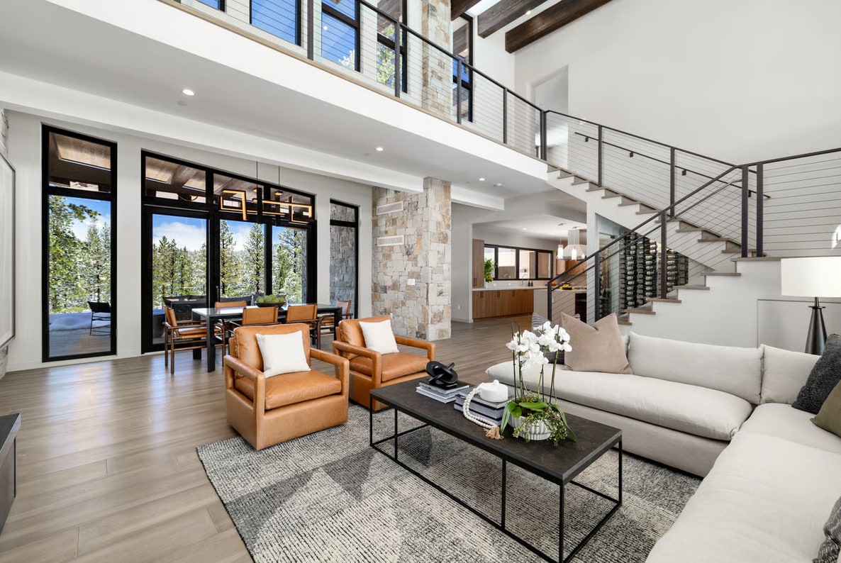 Relax with the whole family at this peaceful place to stay.Welcome to your next Tahoe escape! Nestled within the prestigious Martis Camp community, this architectural masterpiece offers a refined living space, 6 bedrooms, and 6.5 bathrooms — perfect for family get-togethers or luxury retreats. Set against towering pines and open space, the residence features panoramic mountain and valley views, a dramatic butterfly roofline, and a stunning two-story stone fireplace anchoring the great room.