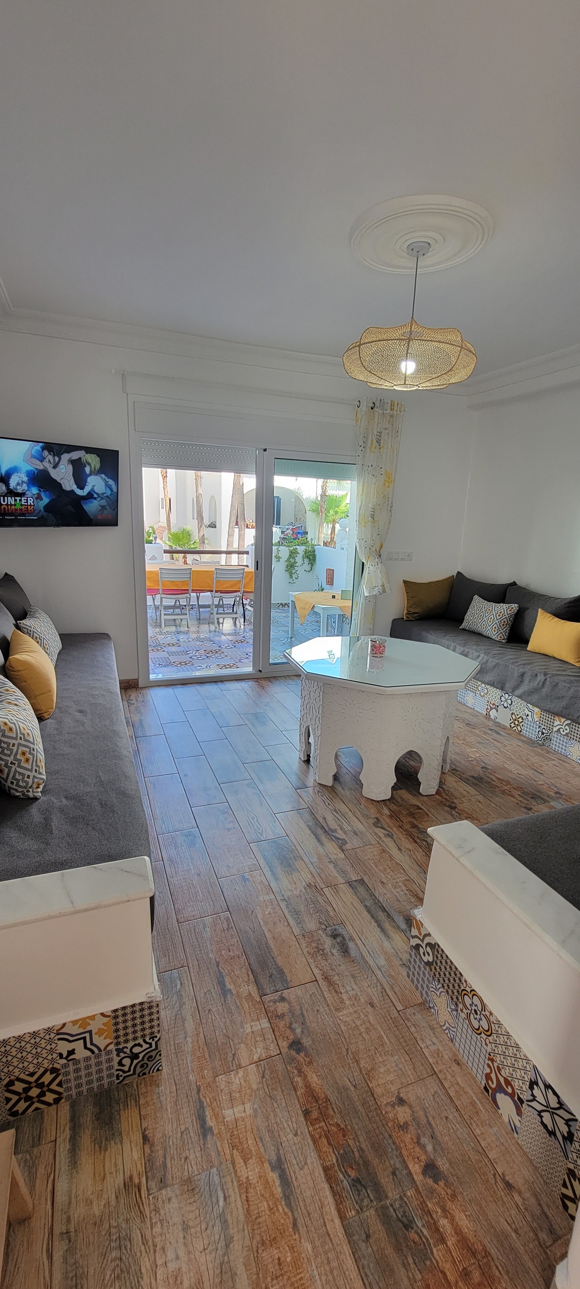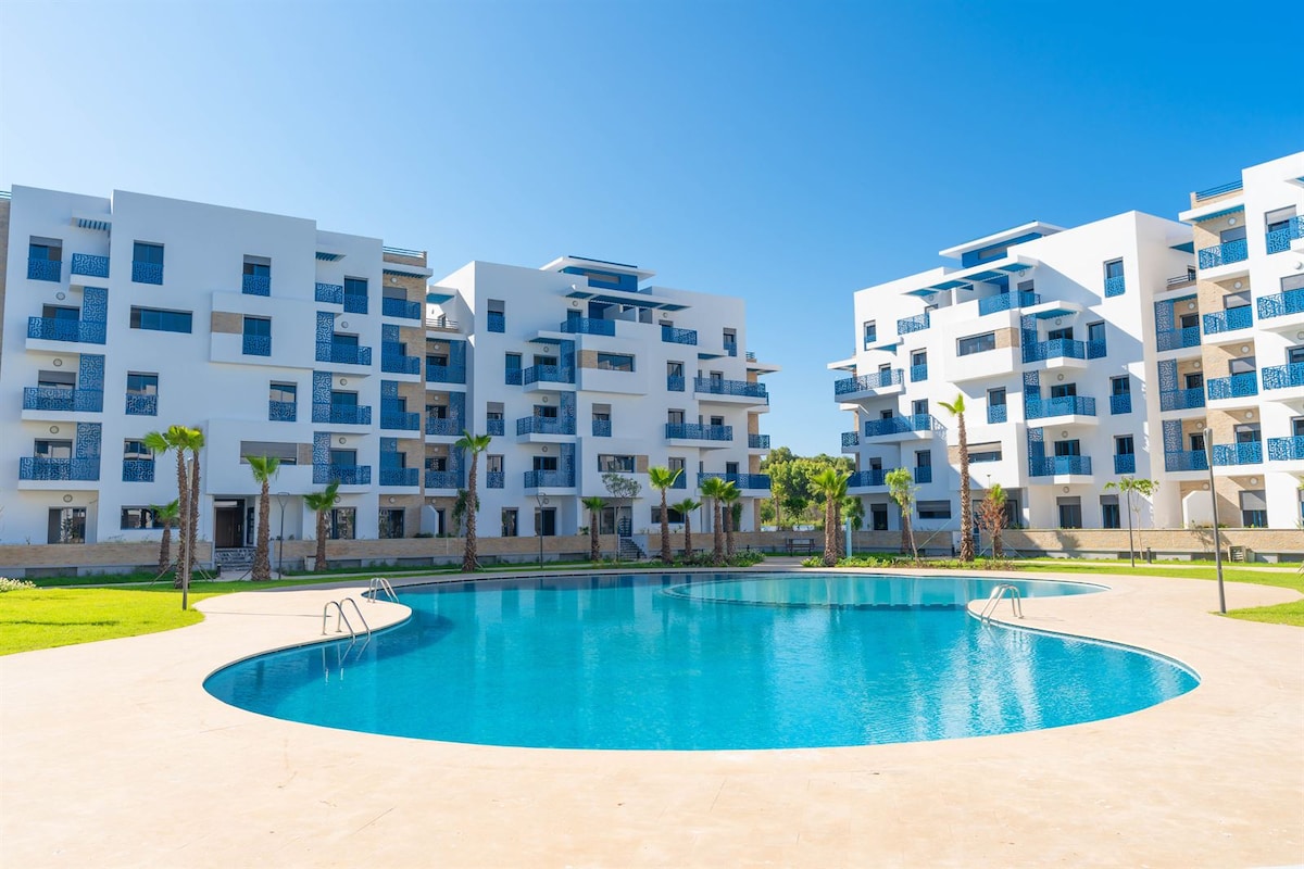 Appartement de rêve avec vue mer & piscine à Cabo Negro, Maroc. Suite parentale, chambre enfants, cuisine équipée, salon lumineux avec TV connectée, salle à manger 8 pers. Résidence avec 2 grandes piscines Toboggan, terrains mini foot, pé, aire de jeux. Accès rapide plage, restaurants, commerces, Parc Aquatique, Quad, cheval, parcours de golf. Parking et service livraison (Glovo) disponibles. Idéal pour des vacances en famille. Attention piscine non opérationnel en hiver à partir du 1/10 au 15/5