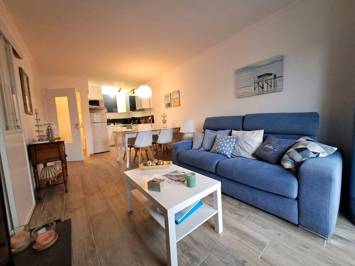 Location appartement plein centre. Très chaleureux, WIFI gratuit. Surface de 27 m² et balcon de 5 m² Possibilité de tout faire à pied. 2 ème étage sans ascenseur, exposé sud ouest, sans vis à vis. Gare et plage à 300 m, Marché à 400 m, avenue commerçante à 100 m, Supérette à 100 m. Pas de place de parking privative mais stationnement gratuit à 50 m. Linge fourni sur demande. 25€ pour draps et linge de toilette pour 2 personnes 1 lit, à régler en arrivant. 10€ supplémentaire pour le canapé lit