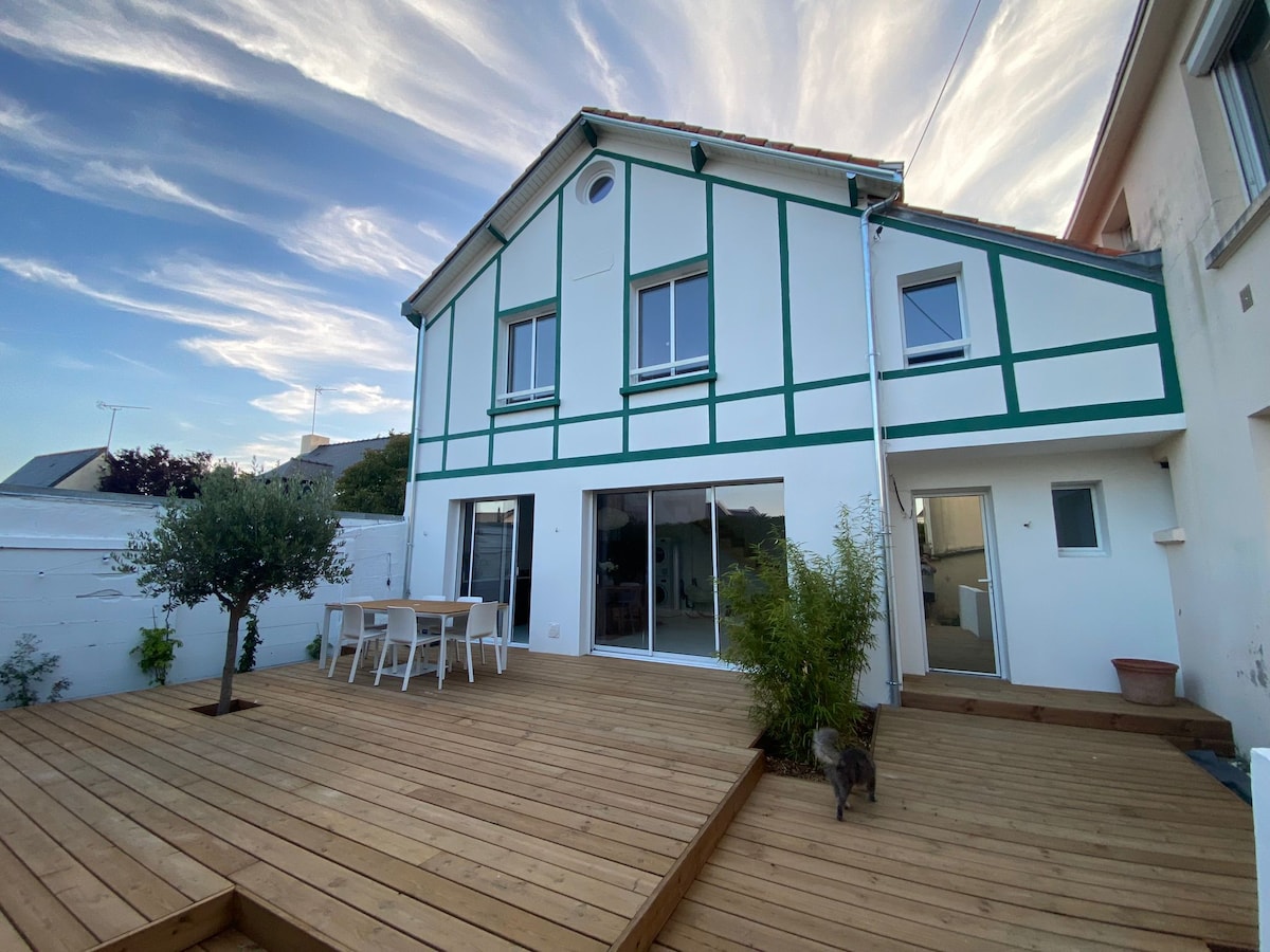 Villa familiale, sous les pins, à 600 m de la plage et du centre de la Baule. Au calme, dans le quartier du Garden (tennis / piscine Aquabaule), sans vis à vis, vous pourrez aussi profiter de son jardin spacieux et de sa terrasse. - 3 chambres et 3 salles de bain individuelles. Possibilité 4e chambre double (dans le salon RdC). - Un espace de vie salon / salle à manger pour les repas en famille et amis - Grande cuisine équipée - Parking pour 2 véhicules dont 1 couvert (garage)