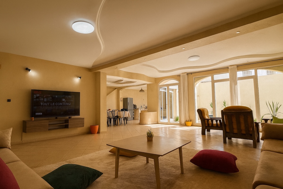 Un appartement moderne, parfaitement situé, idéal pour explorer la ville à pied. Que vous soyez là pour un court séjour ou des vacances prolongées, notre logement vous offre tout le confort dont vous avez besoin. Espace lumineux et aéré, décoré avec goût dans un style contemporain Proche de toutes commodités :5 min du Souk ,10 min de la plage Salon confortable, cuisine équipée,et 2 chambres ,fibre optic,IPTV,climatisation. Environnement calme et relaxant malgré la proximité du centre-ville