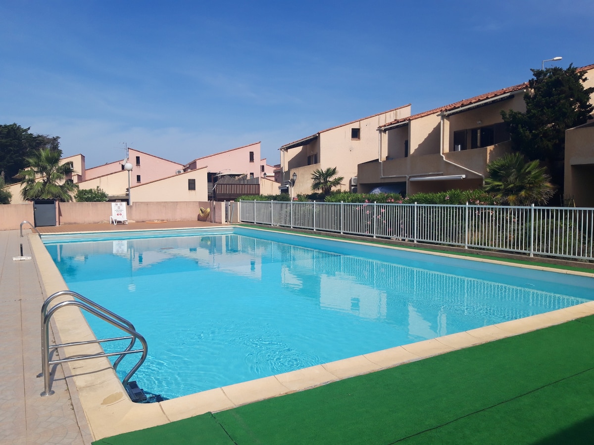 Une vue mer exceptionnelle pour ce lumineux T2 climatisé. Une résidence de standing sécurisée (portail électrique à code). De quoi passer des moments magiques dans cet appartement confortable et baigné de lumière. Une grande piscine et deux terrains de tennis participeront à votre détente. Par ailleurs, à 400 mètres de l'appartement une plage presque privée s’offre à vous (inconnue du grand public).Idéal pour un ou deux couples, les voyageurs en solo ou une famille.