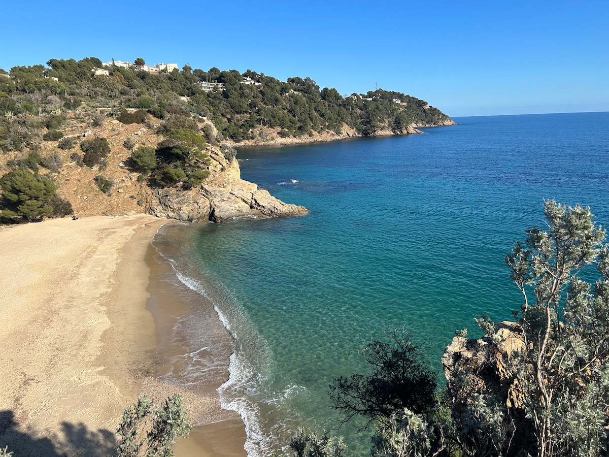 Appartement attenant à une villa mais totalement indépendant. Détendez-vous dans ce logement calme et élégant Laissez votre voiture au parking et profitez de son emplacement proche de la plage et du centre-ville de Cavalaire, des sentiers de randonnée pédestre et cyclables. Possibilité de stationner votre véhicule sur le terrain sécurisé de la villa, possibilité également de stocker des vélos à l’abri.