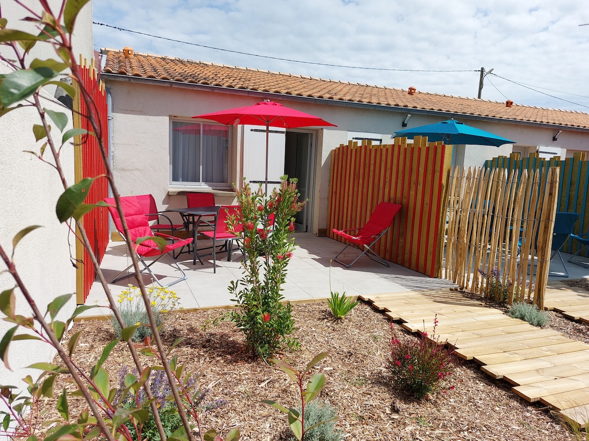 Maisonnette rénovée, confortable et au calme pour 4/6 personnes en bordure de la foret des Saumonards (nombreuses pistes Running et VTT). Commerces et port à 500 mètres. Grande plage de boyardville face au fort boyard à 800 mètres. On peut tout faire à pied sur Boyardville et visiter l'ile en vélo. Pistes cyclable à proximité immédiate (conseil: suivre vers la braies pour traverser le marais salant et voir les nombreux oiseaux). Parking privé, 2 espaces extérieurs avec plancha et barbecue.