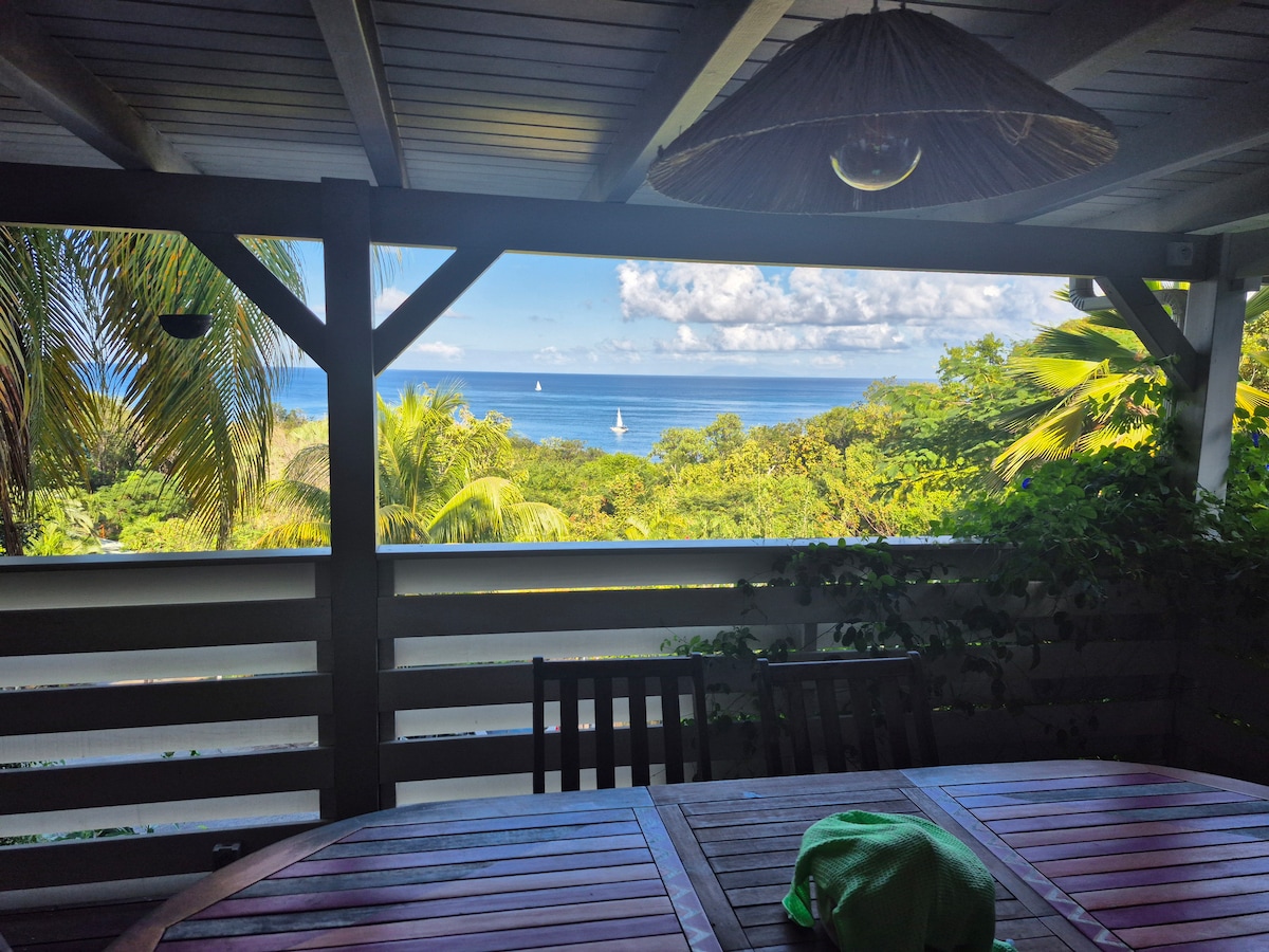 Venez profiter de la vue vue imprenable sur la mer des Caraïbes Vous pourrez vous rafraichir dans la piscine après vos activités de la journée: plongée, randonnées, plage... Un choix de restaurant vous attend dans le bourg ou sur les plages mais vous pourrez préparer vos repas dans la vaste cuisine équipée et diner à votre convenance dedans ou dehors Un repos paisible vous attend dans 3 chambres climatisées(2 avec vue mer)chacune équipée de leur salle de douche