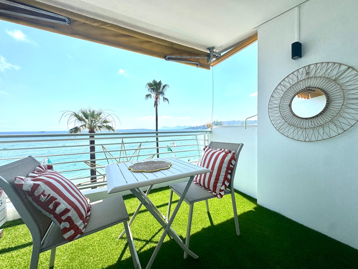 Petit 2 pièces de luxe avec vue imprenable sur la mer Ce superbe appartement offre un accès direct à la plage, idéal pour des moments de détente absolue. Un cadre idyllique pour des vacances inoubliables, les pieds dans l'eau, avec une vue spectaculaire sur la Méditerranée. A certaines période, l'activité du front de mer peut se faire entendre. L’appartement peut accueillir 2 adultes dans un coin nuit avec un véritable lit 140x190, et 2 personnes supplémentaires sur un canapé convertible.