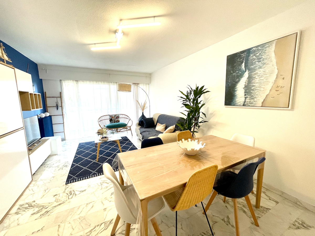 Renovated building, our apartment has been thought for you to feel good and especially "like" at home. Fully equipped and refurbished, located in the heart of Juan les Pins with a breathtaking view of the sea. You can have lunch or dinner on the terrace but also inside, all the rooms of the apartment are equipped with air conditioning. The living room has a cable TV. Possibility of umbrella bed on request.