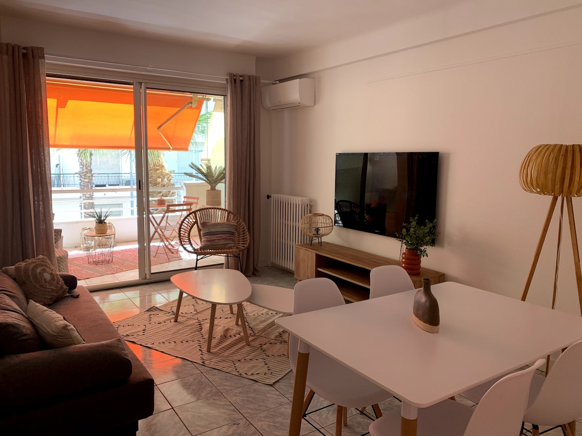 Beautiful studio with a separate sleeping area and a pleasant terrace, ideally located in the heart of Juan, just a few meters from the beaches as well as all amenities: shops, bars, restaurants, supermarket... You will also find the train station 300m away, as well as all bus lines to Antibes and the surrounding area. Very bright, dual-aspect, air-conditioned and equipped with free wifi, double-glazed windows, washing machine. Linens are provided and beach towels are available upon request.
