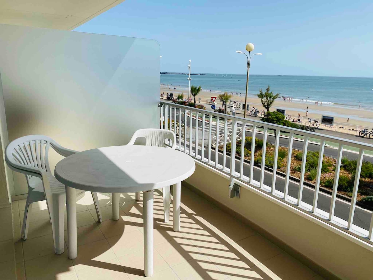 studio face mer vue imprenable, 2 eme etage. A 2mn AQUABAULE (piscine eau de mer, Hammam,sauna,parcours marin) confortable, lumineux refait par architecte d'intérieur. lit 160 rabattable , four micro-onde, congélateur, frigo ,cafetière, bouilloire,nespresso, séchoir à cheveux, fer à repasser , machine à laver la vaisselle, plaque induction, hotte, télévision connectée, WIFI stationnement gratuit dans le quartier terrasse chaises table 2 transats Linge de lit et serviettes fournis