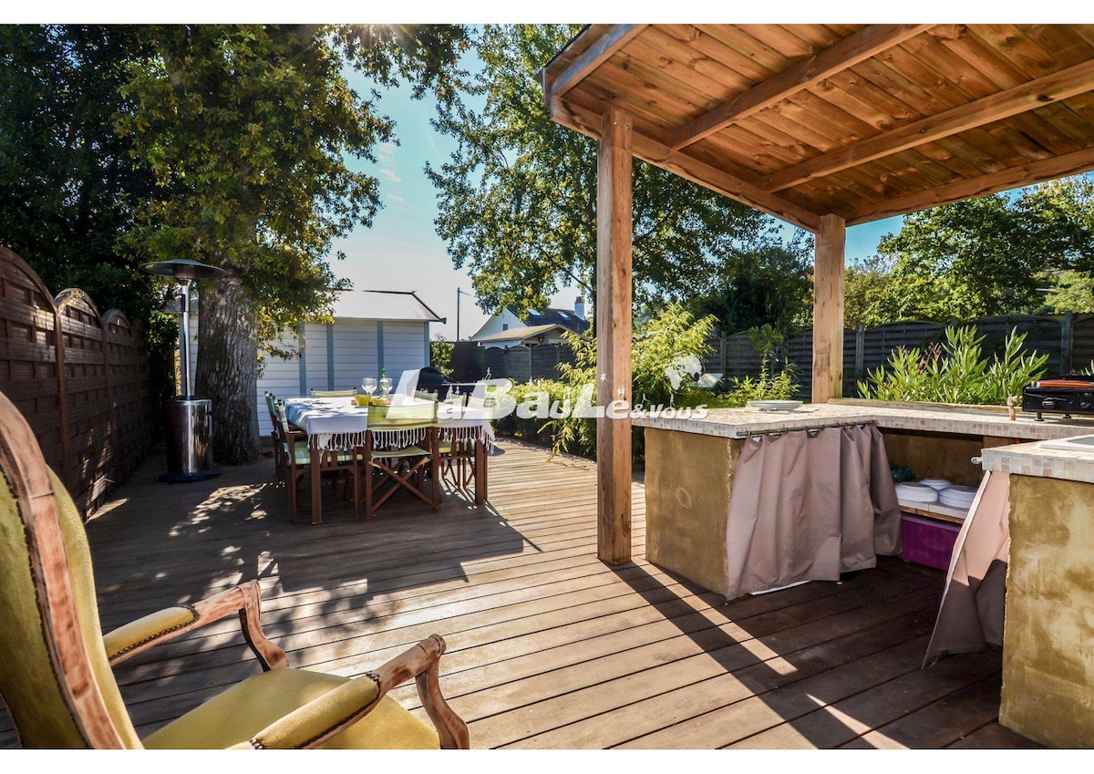 Go green in this pretty 130M2 house, completely renovated, zen, bright, furnished with taste and finesse. It is located 300 m from the beach. Its refined, zen and elegant decoration, its large terrace, its garden, its local shops, its 03 beautiful rooms, including a master suite on the ground floor, its modern equipment make this house the ideal base for a group or a family in La Baule... 08 Beds, 4 of which make up the two large beds in the house.