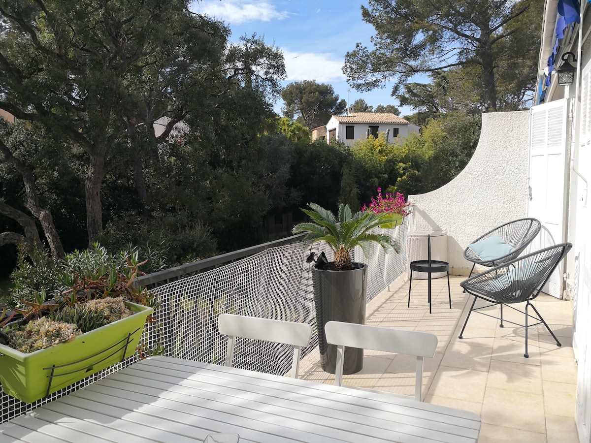 Dans maison de caractère,"la Villa Marie", au milieu d'un jardin méditerranéen : "La Galerie" appartement avec terrasse sur le jardin , 2 chambres avec lit double ou 2 lits (de 80). Chaque chambre a sa salle d'eau. Climatisation, wifi, parking. A pied : 7 mn (crique) ou plage de sable (La peiguière 10 mn). Superette à 15mn Chemin du littoral 7mn Port de Santa Luccia 10mn : restaurants, commerces Cannes, Grasse , Nice , 50 mn Parking dans la propriété