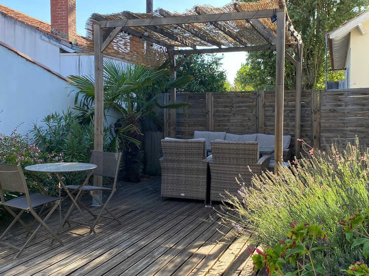 Cette maison est notre maison de vacances, nous y passons de très bons moments avec nos 3 enfants et nous aimerions qu'elle puisse accueillir des voyageurs de passage au bord de l'Atlantique... La maison est agréablement située, à 5 minutes de la plage et du centre ville. Elle est au fond d'une impasse, très calme. Tous les déplacements peuvent se faire à pieds ou à vélos. Le jardin de 400 m2 est clos et arboré. Il y a une place de parking. Idéale pour un séjour en famille ou entre amis.