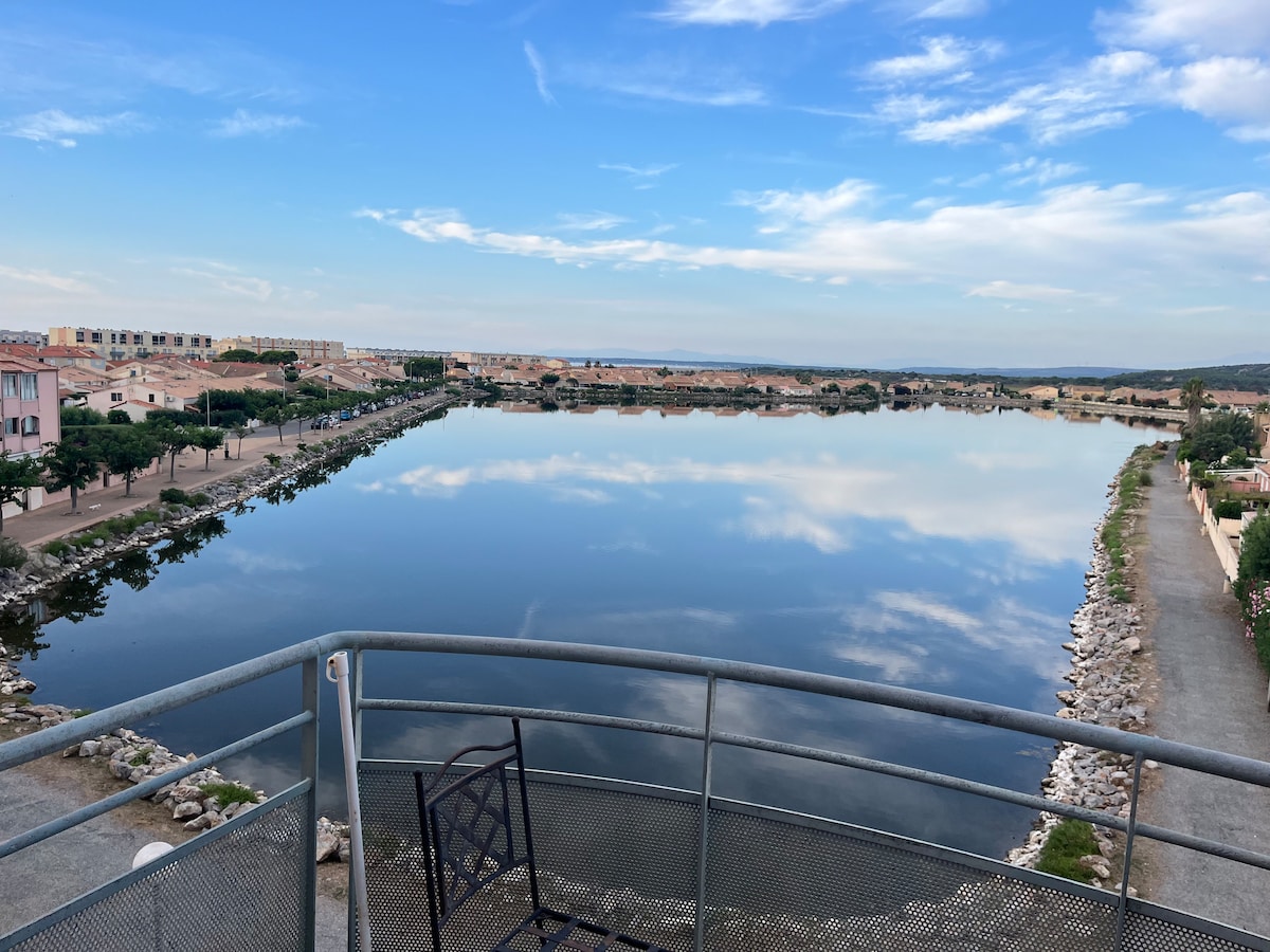 Le Studio situé au cœur des 3 Gruissan se trouve dans une résidence avec parking, au 2° étage sans ascenseur. Niché à seulement 5 mn à pied du village, à 10 mn du port, à 25 mn (7mn à vélo) de la plage des chalets Le studio avec sa terrasse, offre une vue imprenable sur les étangs, la mer, les salins et à 2 pas de la route qui mène aux chalets, doublée d’une piste cyclable. Confortable, moderne, super équipé : Climatisation, Fibre, Piscine 15/06-15/09, 2 vélos, linge lit & bain Un vrai Cocon