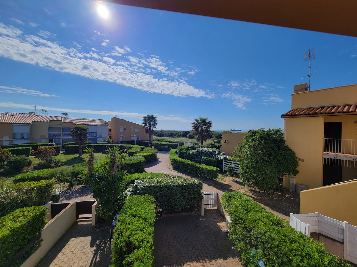 滨海小城Cap d'Agde Rochelongue的海景单间公寓