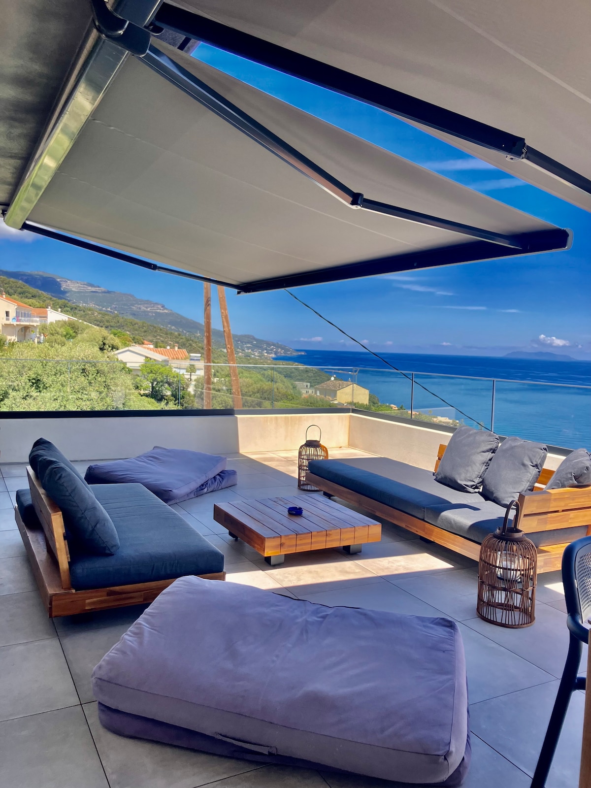 CASA DI L’ORIZZONTI : Découvrez le charme du Cap Corse à travers notre maison contemporaine qui a su préserver l’authenticité du site. Au bord du littoral, elle profite de la brise marine caractéristique du Cap Corse. Dans une ambiance intimiste grâce ses arbres, vous pourrez tout autant prendre un bain de soleil et vous rafraichir dans son bassin traditionnel Corse avec un jardin de 350m2. Vous bénéficierez d’une superbe vue panoramique sur la mer. Accès à la mer en 3minutes à pied.