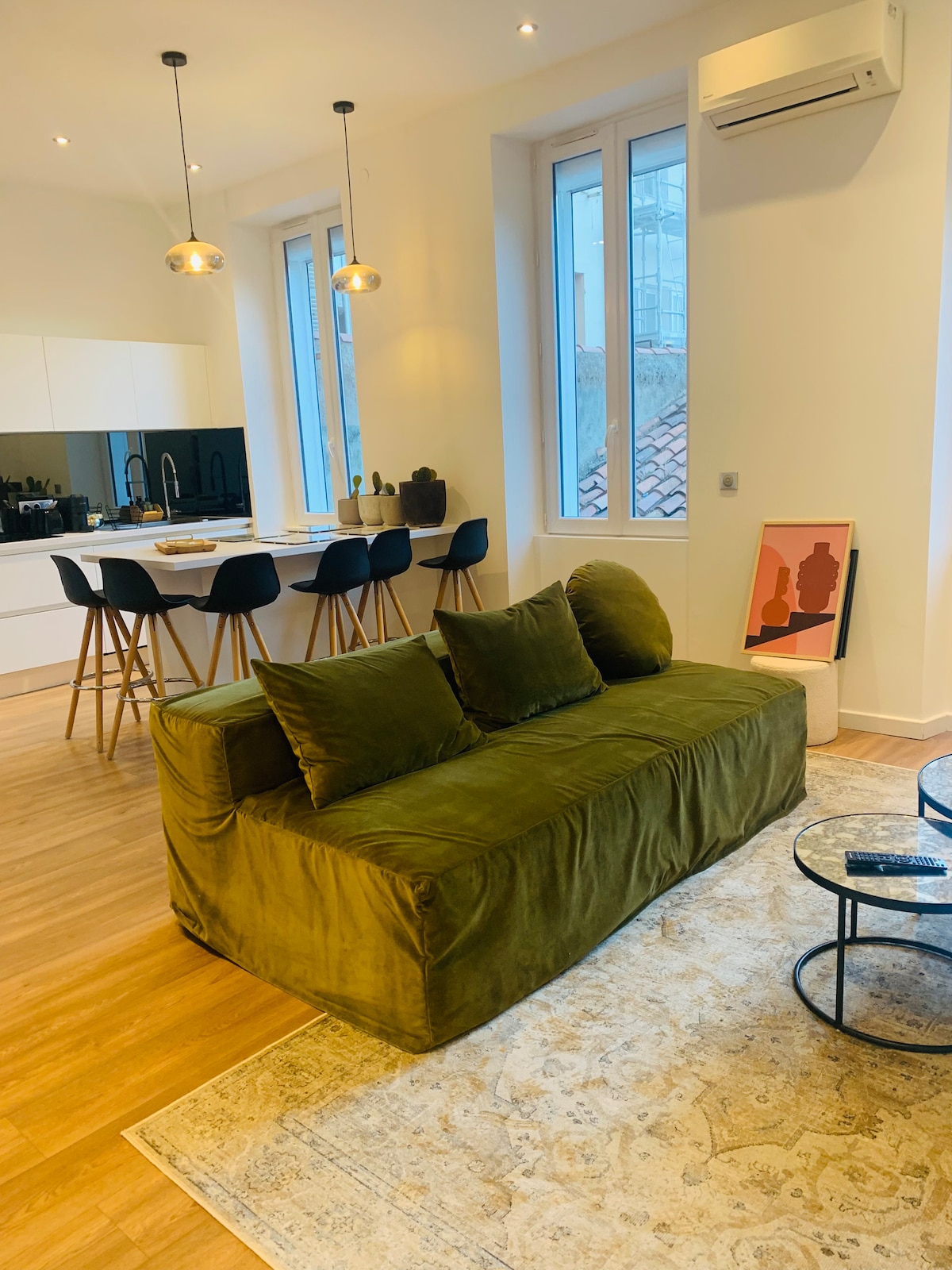 Bienvenue dans ce bel appartement design et cosy au 6 eme étage avec ascenseur et le maximum de confort,entièrement rénové avec un mobilier tout neuf, idéalement situé quartier Saint Victor à 5 minutes du Vieux port,de la plage .Vous disposez d’une cuisine entièrement équipée machine à café lave linge frigidaire plaque induction .Le 14 Juillet admirez le feu d’artifice du balcon . des lignes de bus desservent la zone ,stationnement gratuit dans les rues adjacentes ou au parking payant