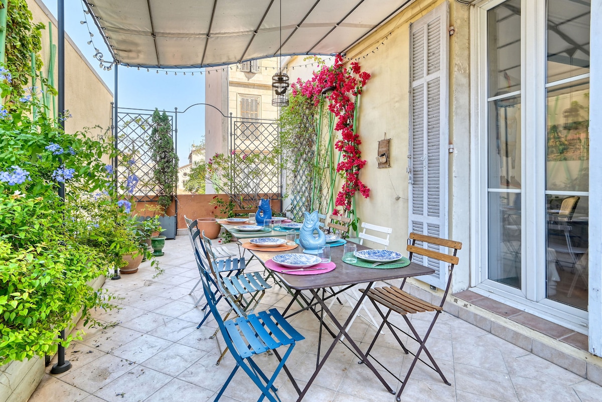 Très bel appartement familial (220 m²) typiquement Marseillais, très lumineux belle hauteur sous plafond et double vitrage, et avec une terrasse de 60m² joliment aménagée, idéale pour prendre vos repas et pour les apéros du soir quand la chaleur retombe et que la lumière orangée baigne la ville. Proche Vieux Port, Notre Dame de la Garde, transports publics et Gare St Charles. Idéal télétravail Draps et serviettes fournis ainsi que tout pour le petit déjeuner pour la durée de votre séjour.