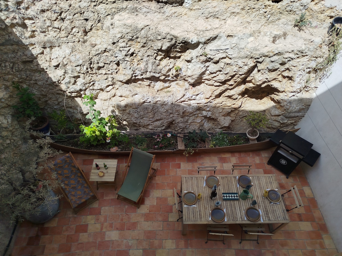 Studio 35 m2 avec une terrasse de 10m2 qui se situe dans les ruelles du village à deux pas de la rue commerçante de Mazargues. Commerces à proximité et nombreux arrêts de bus desservant calanques,plages et centre ville. A 10 min du parc naturel des Calanques,des plages ,de la fac de luminy(kedge),à 15 min de Cassis en voiture. Pour les amoureux de la nature et de la mer, idéal pour les escaladeurs, randonneurs ,mais aussi pour les déplacements professionnels à 15 min du centre ville en bus.