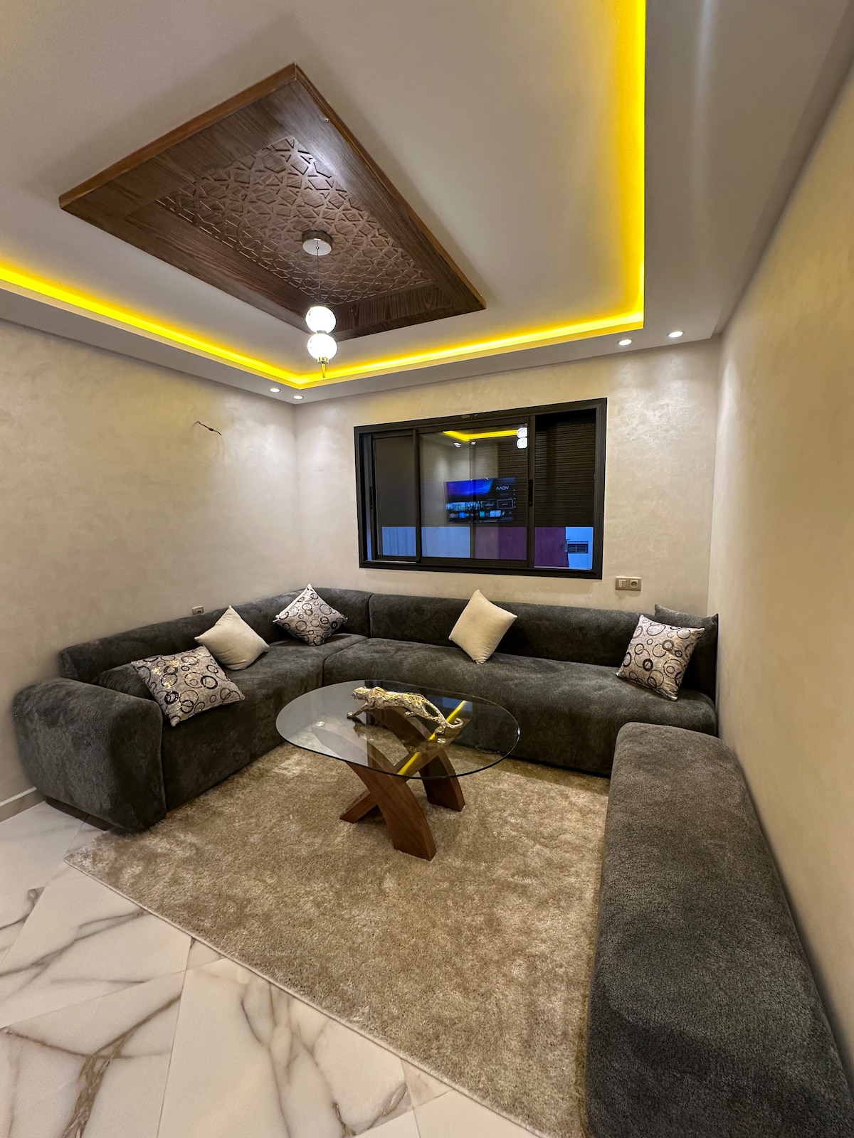 Experience luxury in the heart of Rabat, Morocco's capital city! This refined space features cozy nooks, a comfortable bed, a fully-equipped kitchen, and free WiFi. It has everything you need for a relaxing stay. This modern apartment is located in the chic upper side of Agdal, close to the Sofitel Hotel, Descartes School, and Ibn Sina Forest. Conveniently located, the flat is few steps away from the main street, full of shops, cafes and restaurants. It's only 10 minute-drive from the Medina.