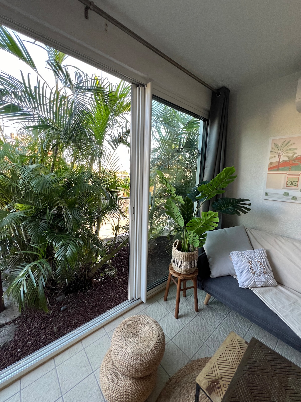 PRIX BAS DU 18/09/2025 AU 18/10/2025 CAR TRAVAUX DE TOITURE Nous louons notre appart, situé au rez-de-chaussée d'une résidence, dans le centre-ville de Saint Gilles les Bains, à proximité immédiate de la plage des roches noires, du port, des restaurants et des commerces. Vue mer exceptionnelle. Appart de 45m², composé d'une chambre (lit double), d'un wc, d'une salle de bain, d'une cuisine ouverte sur le salon (canapé-lit) et d'une terrasse vue mer. Pas de place de parking attitrée.