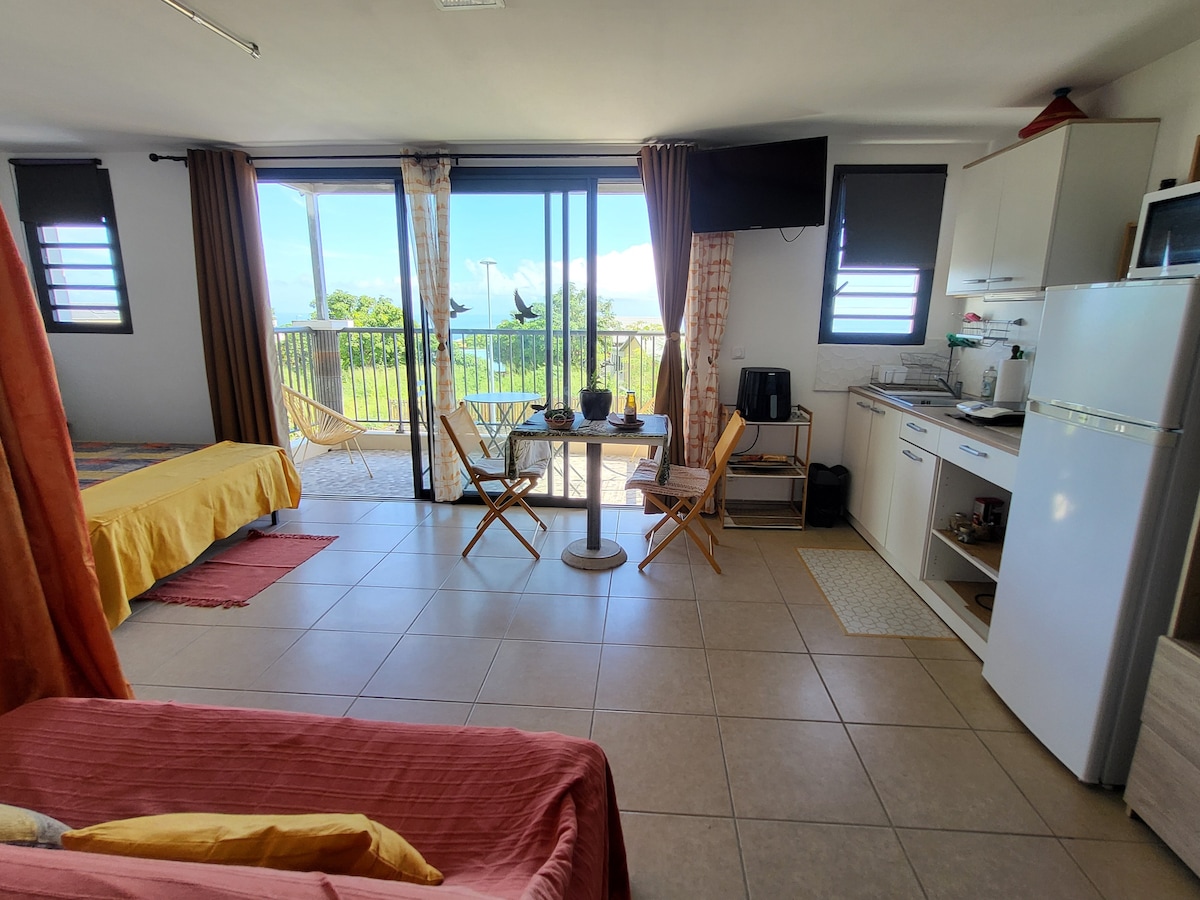 Bienvenue à L'Éperon dans ce studio climatisé avec WI-FI en haut débit Balcon avec vue sur la mer Entrée indépendante Jardinet pour pause détente Parking gratuit face à la maison Idéal pour : - Touriste - randonneur - Séjour pro - télétravail Confortable, fonctionnel, parfait pour courts et long séjours Proche des axes principaux et des sentiers de randonnées, tout en restant au calme Point de départ pour découvrir l'île et profiter de la plage Boucan Canot à 6 km