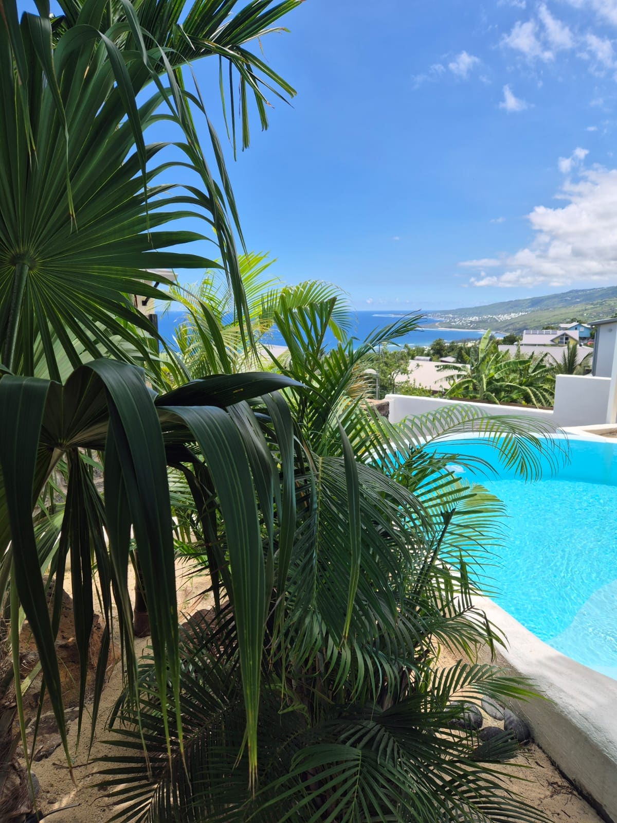 La Palma Villa vous accueille dans un lieu calme et chaleureux à 2mn à pied de la plage et à 10 mn du centre ville. Ses atouts forts: une deuxième cuisine extérieure donnant sur une jolie varangue avec piscine et jardin arboré. With its calm and friendly vibe, you are welcomed at La Palma Villa, situated two minutes by foot from the beach and ten minutes from the city center. The villa main feature is its external kitchen connected to a nice patio with a salt water pool and a quiet garden.