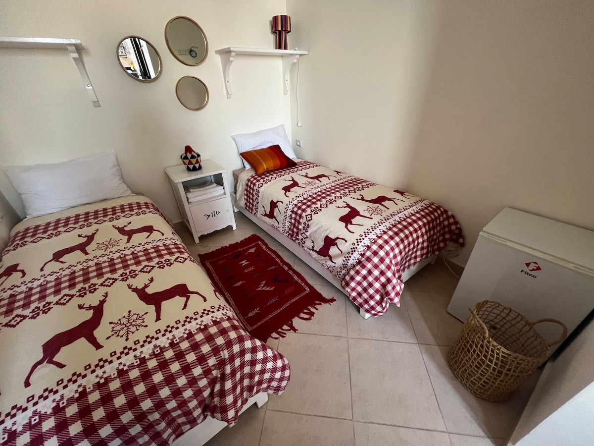 L'appartement Eva, au 1er étage de ce charmant hôtel, comprend 2 chambres, une cuisine, une salle de bains et un salon. L'hôtel propose également de nombreux espaces communs, dont une terrasse avec vue sur la mer, des salons et cuisines partagées pour que chaque voyageur puisse profiter au maximum de son séjour. Meryem, la propriétaire, offre un petit déjeuner en option (60dhs par personne) servi sur la terrasse partagée ou dans le salon de l'hôtel. Les serviettes sont fournies.
