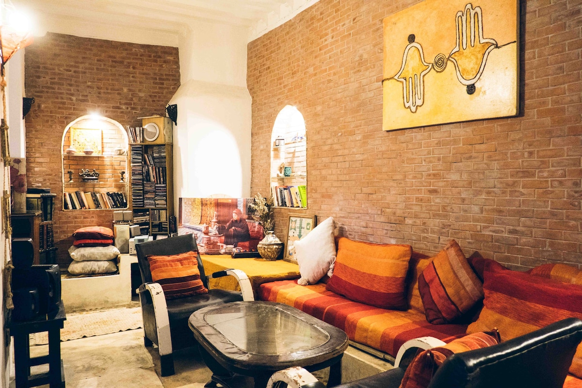 Situé le long des remparts de la ville, et à 7 minutes de marche de la plage,ce magnifique Riad dispose d'un toit-terrasse surplombant l'ancienne médina d'Essaouira. décoré avec goût dans un style marocain et équipé d'une cheminée. Cet hébergement de charme offre un accès très facile aux boutiques et restaurants populaires. Je serais toujours disponible au cas ou vous avez besoin d‘informations ou pour partager avec vous des astuces pour faciliter votre séjour et le rendre plus agréable.