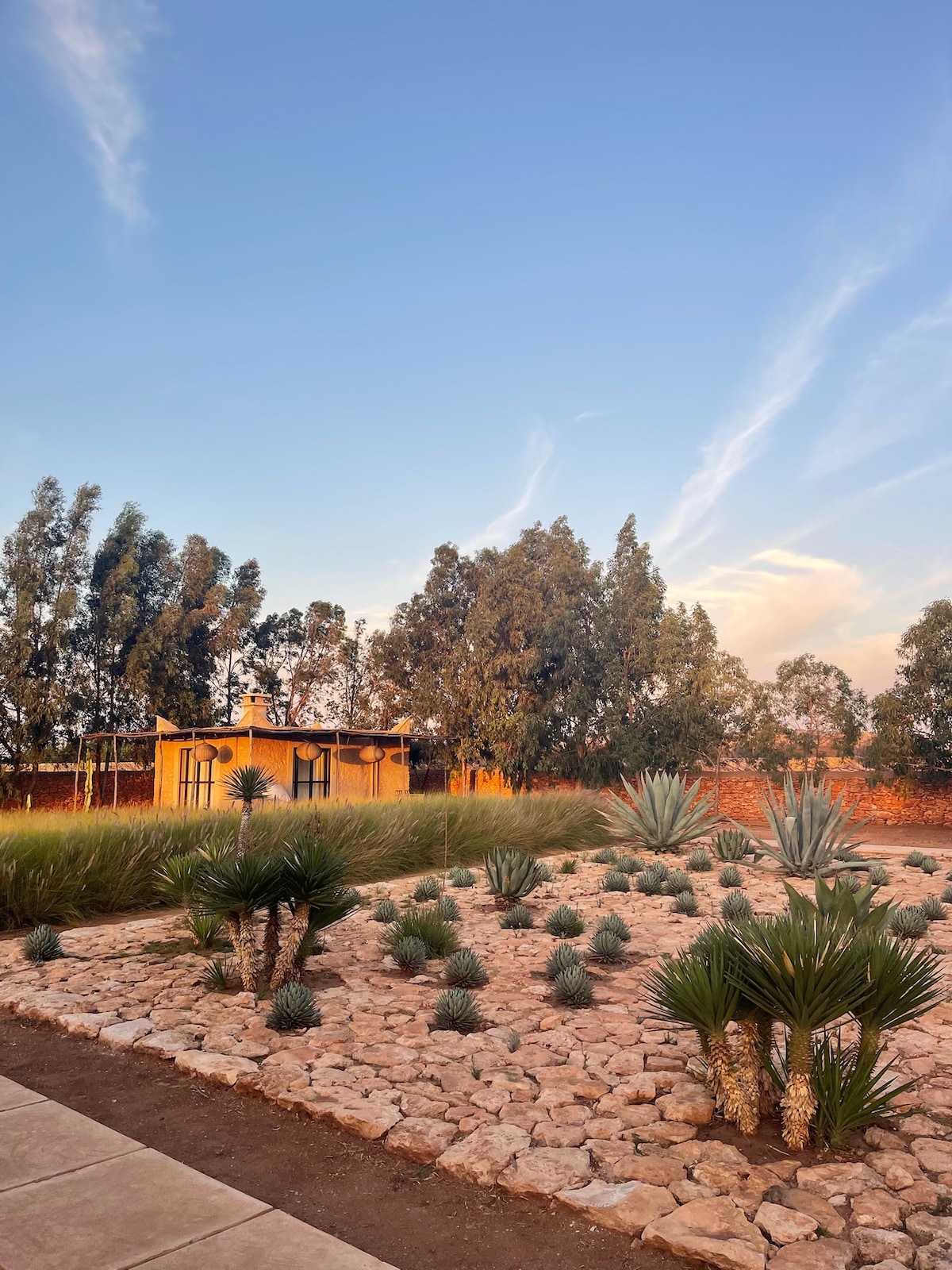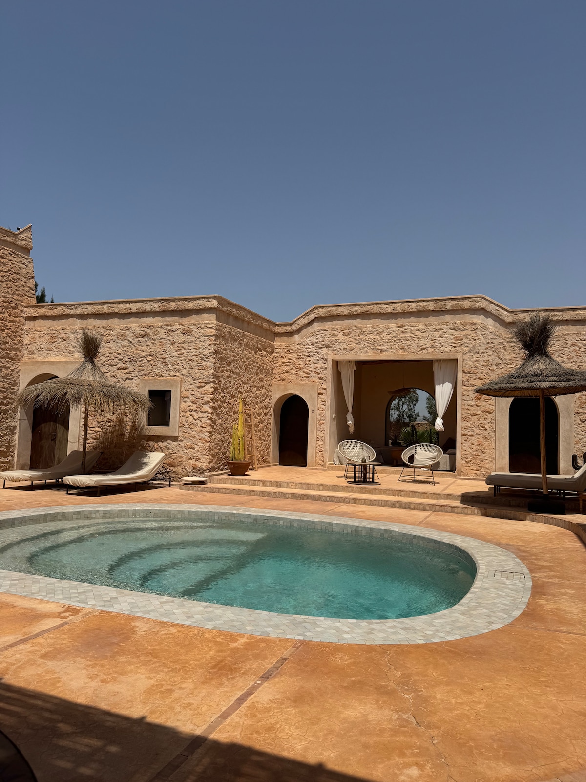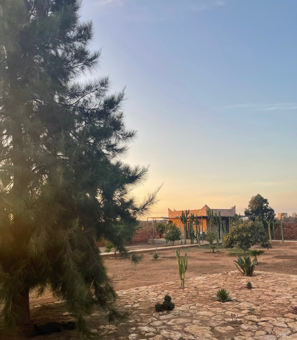 Un lieu à part Situé au coeur de la campagne d'Essaouira, South Lodge est un lieu intimiste niché entre cactus, agaves, oliviers et végétation locale. Sunset est un des 4 lodges/suites que propose le domaine. En retrait, il séduit par ses tons chaud et son atmosphère douce: Chaux, bois brut , sols patinés, matières naturelles. Devant le lodge, des transats invitent au repos. À quelques pas, un bassin en zellige vert nuancé partagé en toute discretion avec un second lodge pour se rafraîchir.