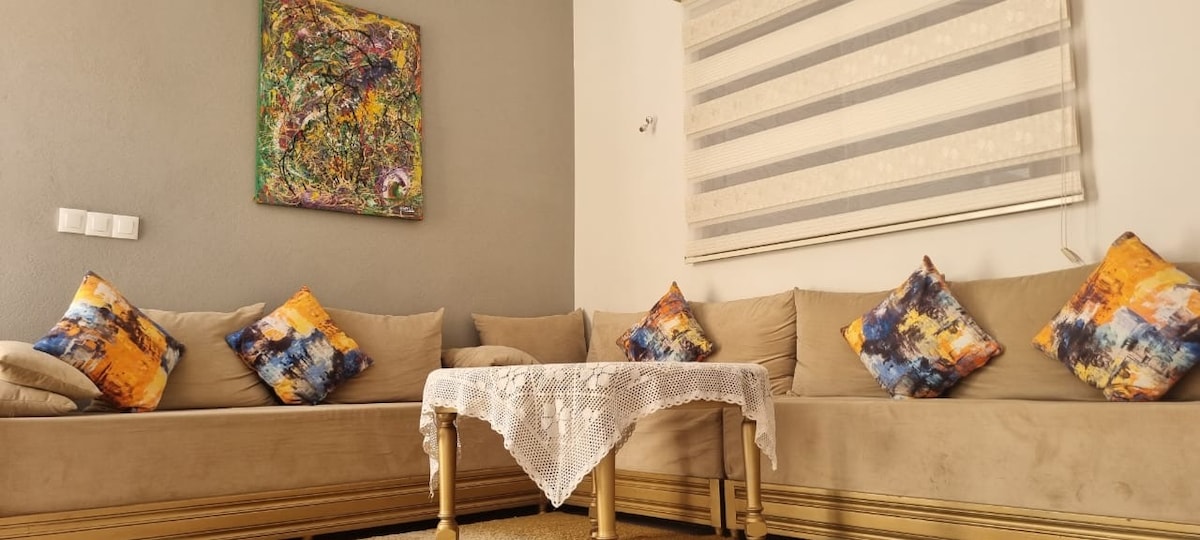 Ce magnifique appartement neuf est une bulle de silence dans l'effervescence d'Essaouira. Il est situé à 5 secondes de la plage et 15mn à pied de l'authentique Médina et de son port traditionnel. Spacieux (180m2), bien équipé et meublé avec des meubles de qualité, sa grande terrasse avec piscine individuelle vous plonge dans une atmosphère unique. Un parking est à disposition. Notre co-hôte Nezha vous accueillera avec professionnalisme. Un 2eme appartement est à côté pour une 2eme famille.