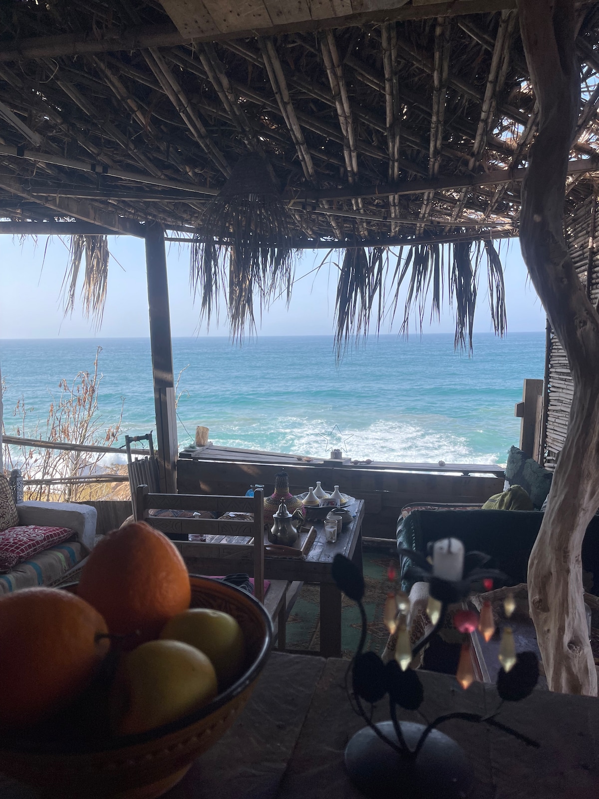Willkommen, Marhaban, Bienvenue und Welcome! Das im maurischen Stil erbaute Haus liegt am Hang direkt an der Atlantikküste. Im oberen Stockwerk befinden sich 2 Apartments mit Duschbad und Terrassen, im unteren Stockwerk Küche, Schlafzimmer, Bad und Wohnzimmer mit Kamin. Zwei Terrassen mit Garten münden auf den glatten Felsen. Zum hauseigenen Strand sind es nur 3 Gehminuten. Je nach Wellengang kann man auch direkt vorm Haus ins Wasser springen.