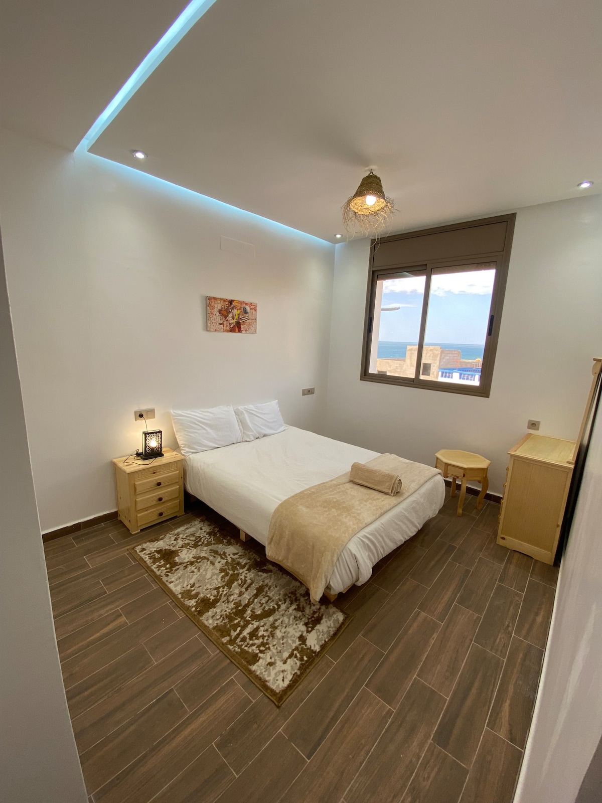 This stylish place with sea-view is close to the beach and all of Taghazout's amenities. Easy to access with on-street parking and above a cafe with a co-working space and fibre-optic wifi and healthy food . Breakfast is available to order for an extra charge. Our rooms are all comfortable, with quality bedding and no bunk beds.