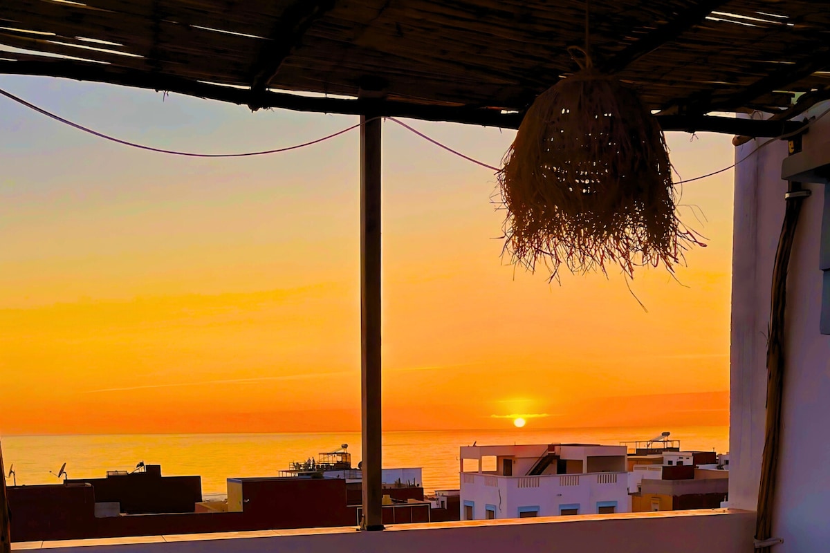 This bright apartment combines authentic Moroccan style with modern comfort. Large windows open to breathtaking views of the ocean , the perfect spot for your morning coffee or sunset relaxation. Inside: -A cozy double bed -A stylish salon with sofa & TV -A fully equipped kitchen with fridge -Private bathroom with shower -Free High-speed Wi-Fi Perfect for both vacations and remote work. Breakfast is served on the rooftop terrace, the perfect spot to start your day with a beautiful ocean view.