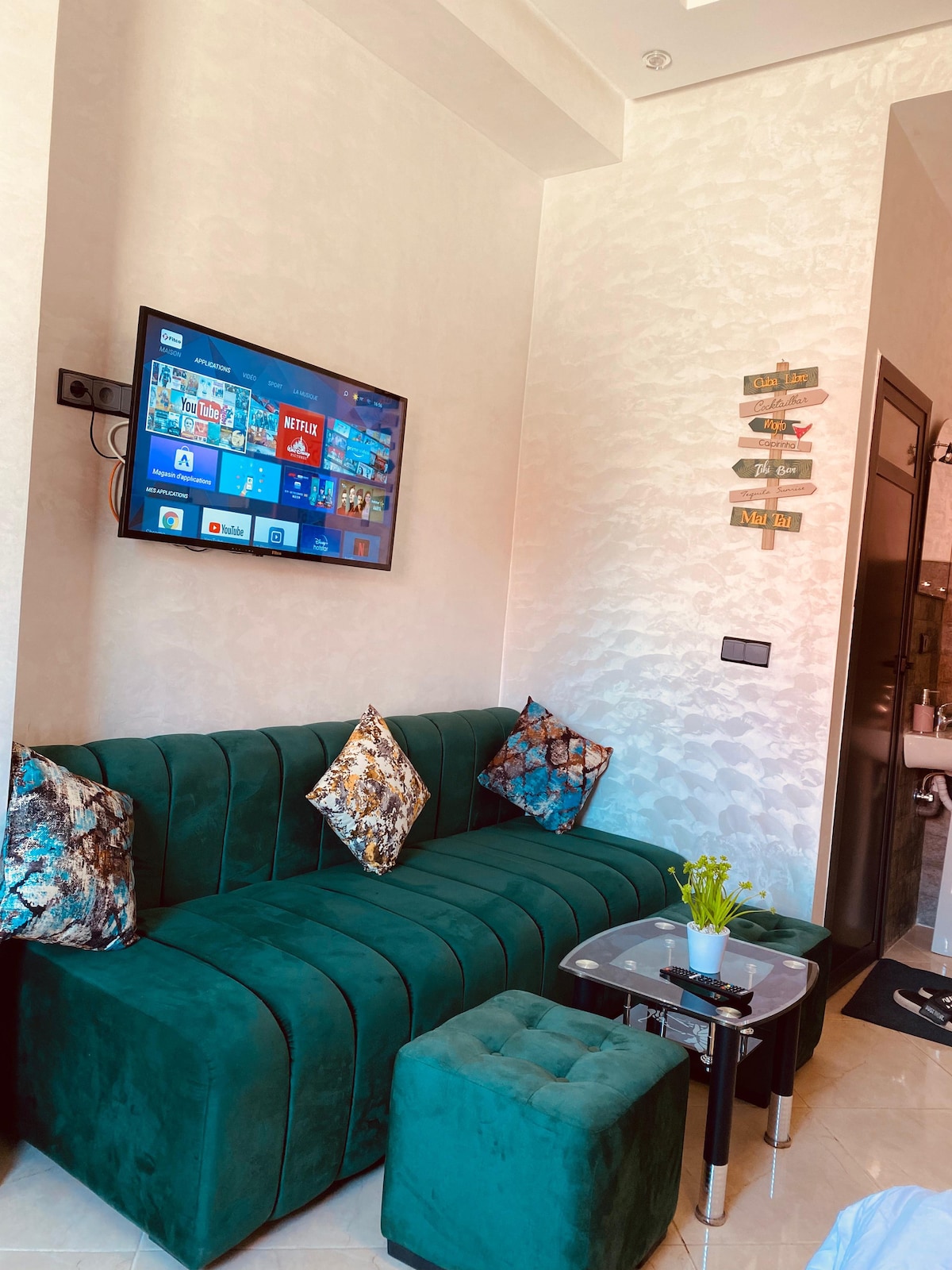 Wake up to the sound of waves in this bright, cozy apartment just minutes from Imsouane beach. Perfect for surfers, couples, or friends wanting to relax and enjoy the ocean breeze. Highlights: • Rooftop terrace with sea view & sunset vibes • Comfy bedrooms with fresh linens • Equipped kitchen + coffee machine • Smart TV & Netflix • Fast fiber Wi-Fi • Secure building with cameras Catch waves at Cathedral & The Bay or simply unwind under the Moroccan sun – your perfect Imsouane escape awaits.