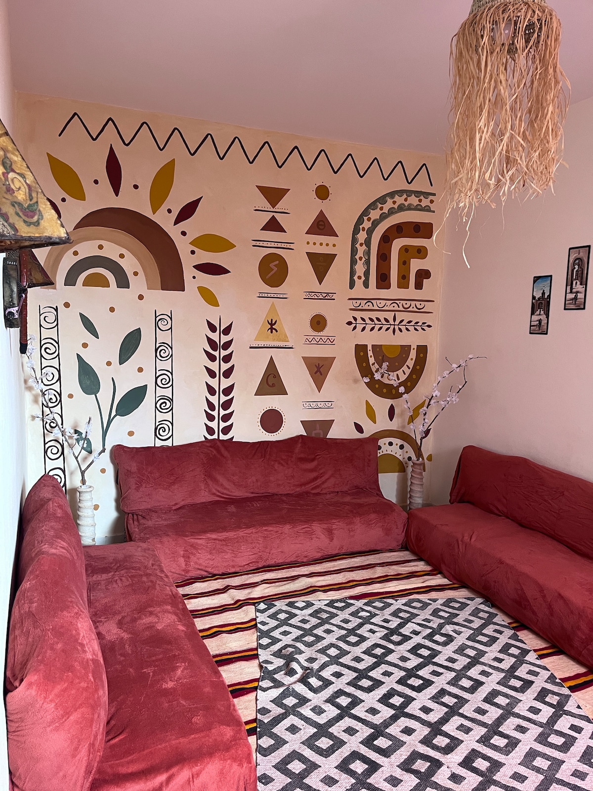 Cozy twin room inspired by the traditional charm of Fez, offering a peaceful and bright space to relax after a surf day. Located on the second floor of Nomazigh Surf House, guests can enjoy access to the chill terrace, co-working area and a rooftop with ocean view. Just a short walk to local bakery (1 min), Happy Tamraght restaurant (2 min), and Manzili Co-working (4 min). Close to popular surf spots like Devil’s Rock and Banana Point.