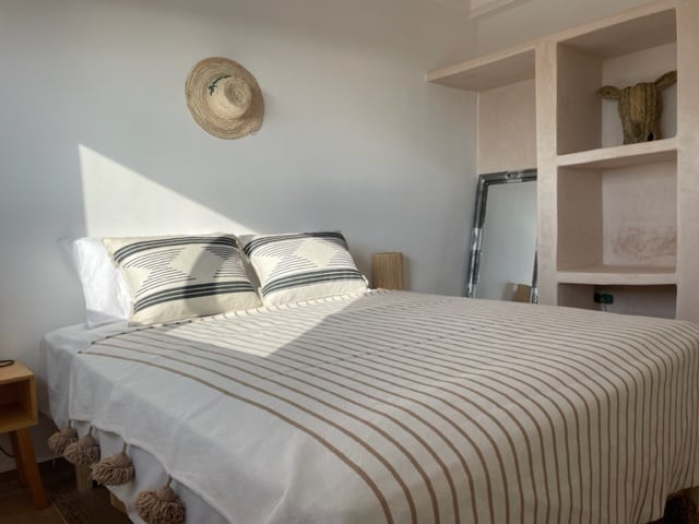 Bienvenue dans notre appartement authentique, niché au cœur de Taghazout, à seulement 4 minutes des plages dorées et des célèbres spots de surf. Ce véritable havre de paix vous invite à vous immerger dans l'ambiance chaleureuse et dynamique de la vie marocaine. Avec ses espaces confortables et son charme traditionnel, notre appartement vous promet une expérience unique, où chaque détail a été soigneusement conçu pour faire de votre séjour un moment inoubliable.
