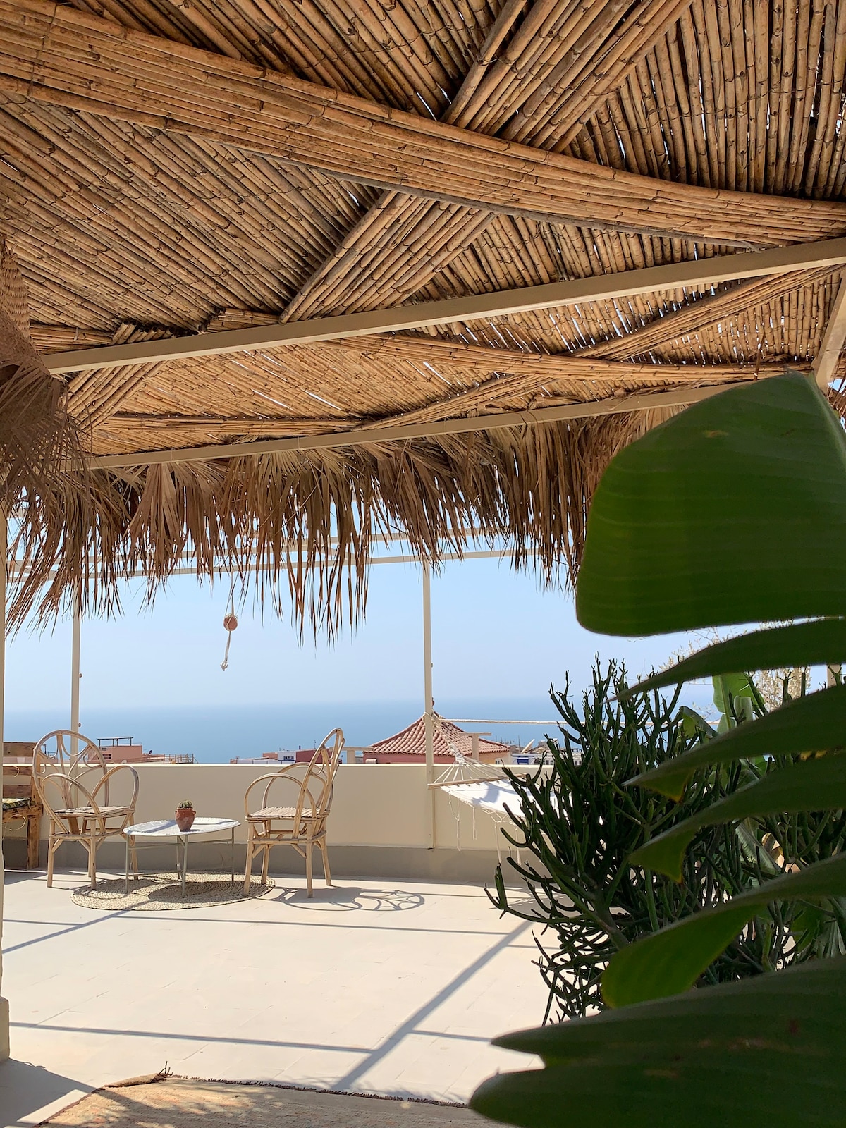 Nous sommes très ravis de vous offrir un appartement qui représente notre culture berbère avec un peu de modernité est une sensation de mille et une nuit Profitez d'un séjour inoubliable dans notre appartement très accueillante et notre superbe Terasse avec une excellente vu à l’océan spécialement sur le spot de surf banana point est au montagnes de Tamraght.