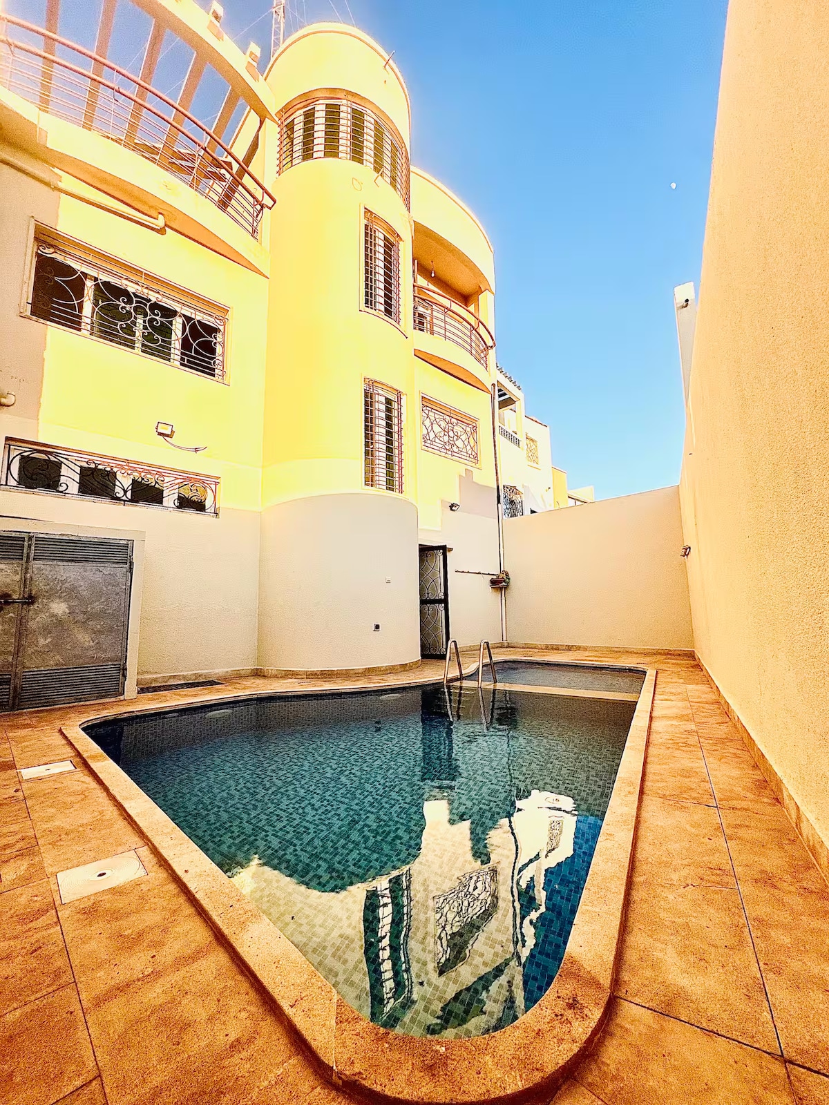Superbe Villa située à Imi Ouaddar à 5 min à pied de la plage. Zone balnéaire la plus prisée du Maroc, connue par le SURF, Jet-ski, les randonnées à pieds et en quad ou buggy. Villa Accolée au village Imi Ouaddar, à quelques minutes d'Agadir, proche de toutes les commodités (superette, pharmacie, restaurants, ...). Spacieuse, cuisine équipée, Smart tele ; piscine privative, double terrasses ( étage et piscine ), barbecue, place réservée pour la voiture, résidence fermée et sécurisée.
