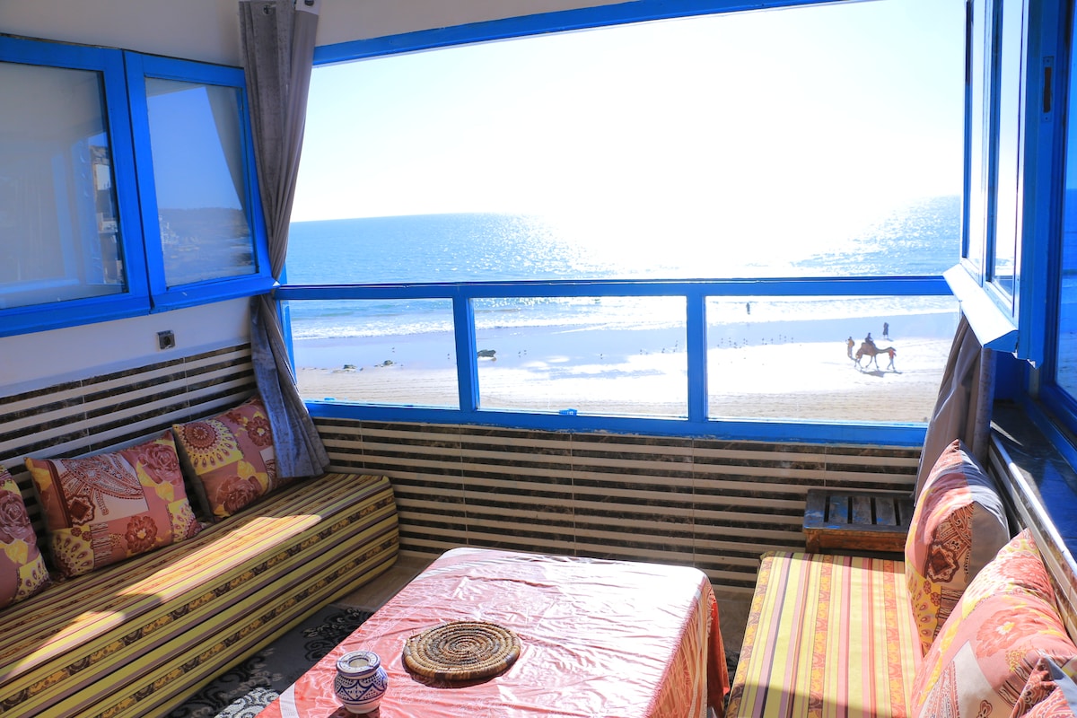 Wonderful sea side apartement, located in the fishers village of Imi Ouaddar. Forget your daily stress a d come spend quality time with your beloved ones. My apartement contains one bedroom with a terrace view, ideal to take your breakfast or dinner. Living room is equiped with 2 sofas and a 55" Smart TV. I offer : free wifi, TV (international channels, movies, tv shows...), a fully equipped kitchen and free parking. Beach is 1 minute from the apartment Enjoy your stay :)