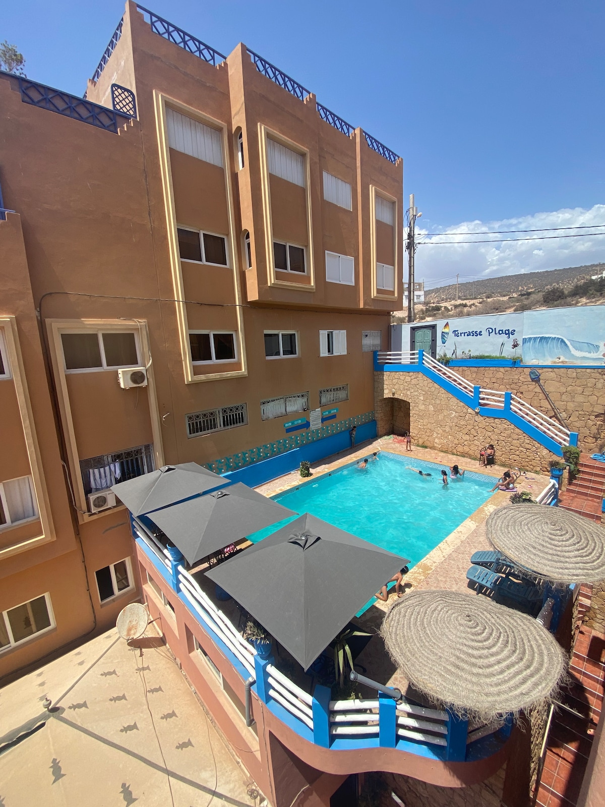 This sunny, spacious apartment is perfect for families or small groups, situated in the heart of Taghazout, a charming surfing town north of Agadir. It's just a short stroll from the beach and close to all the delightful shops, restaurants, and only a 5-minute walk from renowned surf spots like Hash Point and Panorama Beach. The accommodation comfortably fits 1 to 6 people, offering fast Wi-Fi, TV satellite. We offer additional services (airport pick-up, taxi shuttle, car rental & excursions.