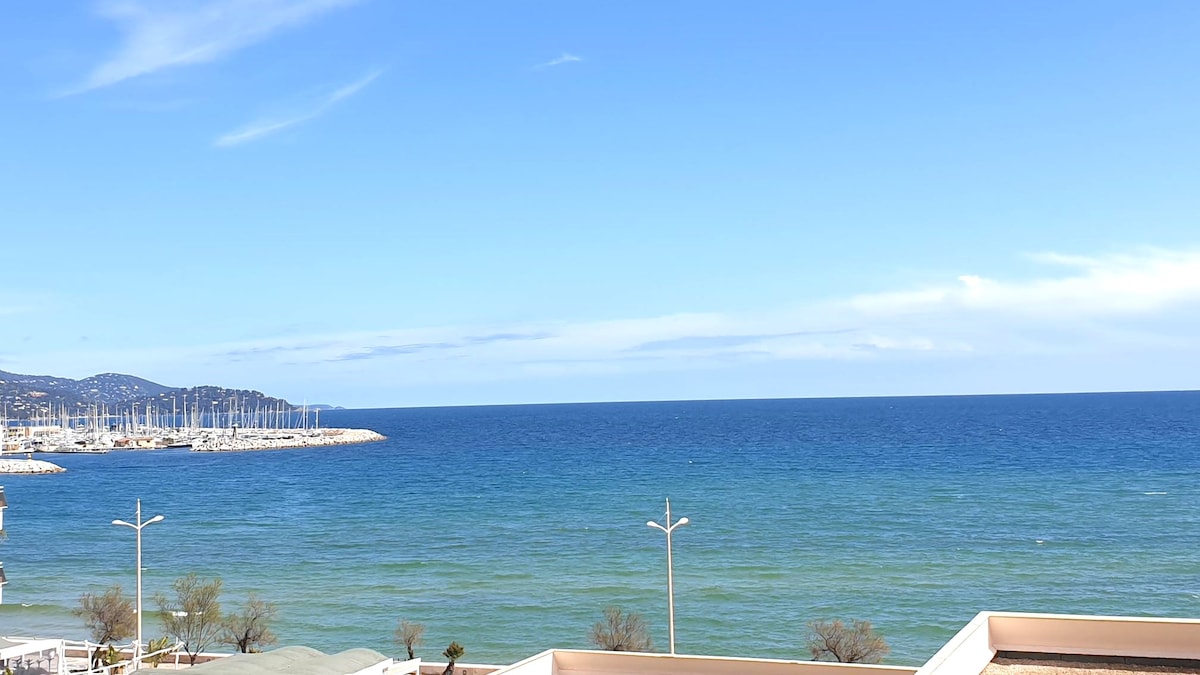 Appartement situé en plein coeur du lavandou, en face du port et terrain de boules. À 100m de la grande plage principale. Appartement traversant, belles prestations, grand séjour salle à manger. Une vaste cuisine US entièrement équipée. Deux climatisations neuve. WC indépendant. Deux chambres lit double dont une donnant vue mer et l'autre sur une jolie petite place piétonne. Draps et linges fournis. Grand dressing. Salle de bain avec douche à l'italienne. Place de parking à 150 mètres