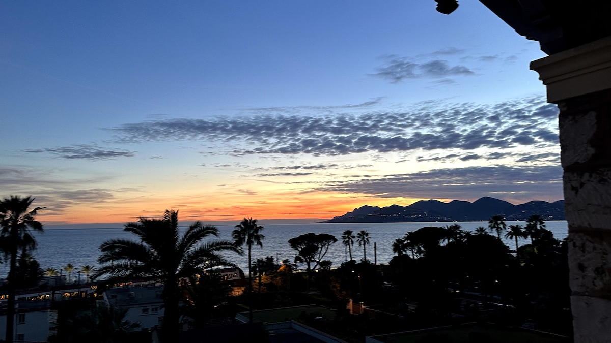 Luxury, light & airy studio with large & private panoramic SEA VIEW BALCONY overlooking the Old Port of Cannes & Palais. Free & very fast WIFI. New A/C. 50" SMART TV BEST LOCATION IN CENTRAL CANNES: only 5 MINS WALK TO PALAIS & La Croisette, 3 MINS WALK TO THE NEAREST BEACH. Restaurants & bars are on your doorstep. Car isn't necessary: bus stops & train station are 10 mins walk Newly refurbished apartment with build-in kitchen, washing machine PERFECT for holiday makers & business travellers