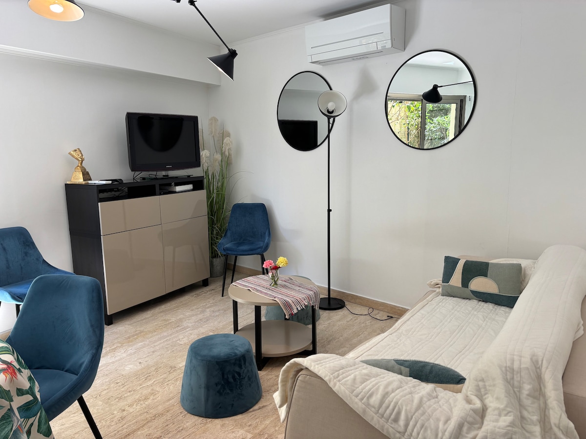 Entièrement Rénové Joli Studio climatisé, au calme, ensoleillé et lumineux Du studio tout se fait à pieds en moins de 10 minutes : le centre ville de Cannes, la gare SNCF, le Palais des Festivals, les plages de la Croisette … A 300 mètres du studio vous trouverez : Le Suquet (vieille ville) et ses restaurants Les plages (publiques et privées) sont à 500 mètres du studio Idéal vacances ou congrès Une place de parking en sous sol à disposition Le balcon surplombe le jardin de la résidence