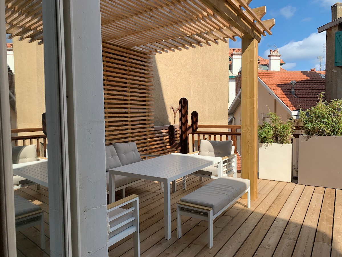 比亚里茨市中心。安静。2>4人。距离海滩150米。