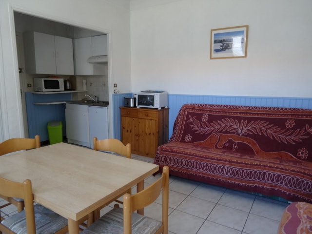 Appartement F2 avec vue et accès direct mer. 1 chambre, salon cuisine équipée, salle d'eau wc Il y a un gardien à l année, une place de parking privée devant la résidence, c est au 4 ème étage avec ascenseur. Endroit calme. Pavillon bleu Clés remise sur place. Ouvert à la location toute l'année. (draps, serviettes et torchons ne sont pas fournis ou en supplément sur demande). Me contacter pour plusieurs semaines, pour débloquer les dates. (toujours avec arrivée et départ les samedis.)